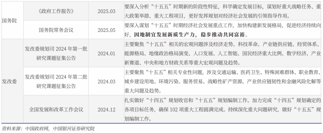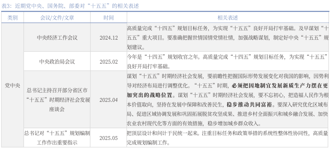 中国即将进入“十五五”期间(2026-2030年),“十五五”规划对于将来5年经济社会成长具有主要意义。连系4月、5月总讲话以及国常会等相关内容,我们总结出以下主要消息:其一,承先启后,把握“十五五”期间的阶段性要求。“十四五”规划提出了2035年根基实现社会从义现代化的雄伟方针,“十五五”是承先启后的环节五年。“十五五”要锚定2035年近景方针,按照“十四五”规划完成环境,连系当下的国际国内形势,对将来5年工做做出前瞻指点。其二,坚持不懈,“十五五”规划将走高质量成长之。着眼强国扶植、平易近族回复伟业,紧紧环绕中国式现代化,统筹成长取平安,连结制制业合理比沉,把因地制宜成长新质出产力摆正在愈加凸起的计谋。其三,顺水推舟,连系形势变化对经济结构进行调整优化。外部不不变不确定难意料要素增加,持续扩大高程度对外的同时,扩大内需、特别是强化消费正在经济增加的根本性感化将成为“十五五”期间的必然选择。新款式、新供给,新供给侧无望成为贯穿“十五五”期间的顶层设想。我们认为,新供给侧的焦点目标正在于鞭策供需正在更高程度上实现良性轮回,夯实科技立异正在现代化扶植中的焦点地位,同时强化消费的根本性感化。顺水推舟调整国平易近经济严沉比例关系,提高居平易近消费正在P中的比沉;鞭策财务收入布局从投资于物向投资于人改变,及时推出育儿补助,提高社保尺度;以消费税为抓手鞭策处所从出产型向办事型转向。