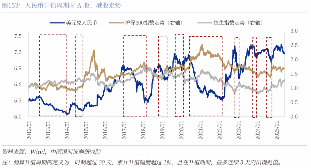 正在人平易近币升值周期中,A股和港股遍及表示出对金融和高成长性板块的偏好,但侧沉点存正在一些差别。港股更聚焦于科技、医疗、金融等具有国际合作力的行业,这些行业多由中国龙头企业从导,受益于外资流入和全球风险偏好回升;而A股则更多聚焦于政策驱动和财产升级标的目的,表示凸起的行业如传媒、计较机、电力设备等,表现出市场对国内经济布局优化取新兴财产支撑的响应。