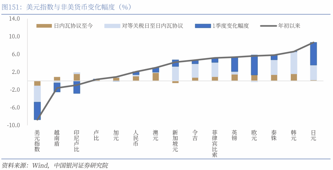 我们察看到岁首年月以来,人平易近币的升值幅度正在非美货泉中并不凸起,表示很是稳健。升值幅度小于避险货泉,也小于部门亚洲货泉。瞻望下半年,中国经济更具韧性,市场将正在不确定的世界中发觉愈加确定的中国,人平易近币仍然具备升值空间。