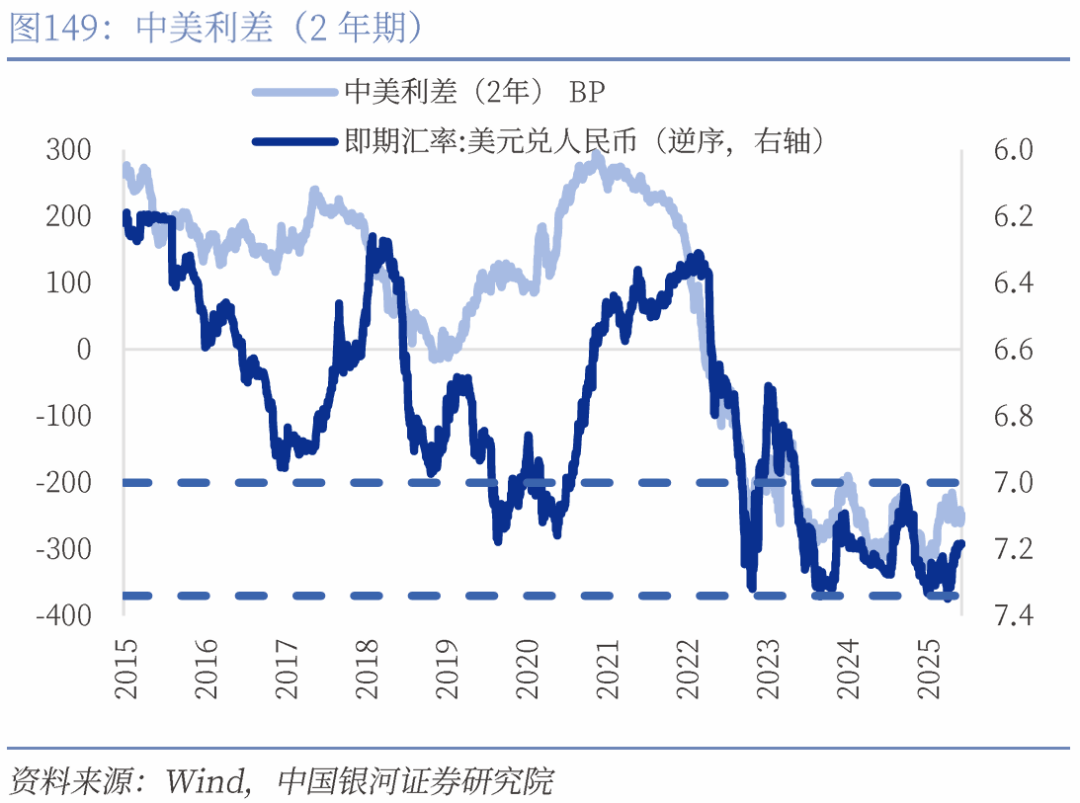 从经济根基面来看,中国经济相较美国更具韧性,过去几年中国的逆周期政策留不足地,这带来目前中国充脚的政策空间,美国加征关税对中国经济和就业的负面影响若是鄙人半年逐渐,中国的财务政策仍然具备充脚的加码空间,并将连结低利率,债权扩张具备可持续,债权扩张无效支持汇率走强。而美国自2020年以来持续的高赤字已耗尽了大部门财务的空间,叠加高利率,财务的还本付息压力已难认为继。美国加征关税也会反噬本身经济。国际本钱流入将对人平易近币形成支持。我们认为下半年全球经济仍然充满不确定性,而人平易近币资产将具备更大简直定性,这将吸引国际本钱流入中国,增配中国债券及中国股市。货泉政策将从中性要素逐渐过渡到积极要素。我们认为正在人平易近银行宽松超预期的布景下,下半年仍然可能调降政策利率1-2次,幅度合计正在20-30BP之间。另一方面美联储可能正在9月再次降息,年内暖和降息2次。因而,正在美联储再次降息之后,货泉政策对汇率的影响将从中性要素过渡到积极要素。加征关税的冲击之下商业顺差可能收窄,这将对人平易近币汇率形成负面影响,但结汇志愿可能上行,对冲部门负面影响。美国加征关税对中国出口带来必然冲击,商业顺差可能鄙人半年有所收窄,这对人平易近币汇率形成负面影响,但需要关心的是,美元下行周期的布景下,人平易近币的贬值预期已被打破,企业的结汇志愿也将上升这会部门对冲商业顺差缩小的负面影响。同时,岁暮凡是呈现季候性结汇需求上升,也将对汇率形成支持。央行的汇率政策仍然是连结人平易近币汇率的根基不变,这意味着升值的程序将连结很是稳健。上半年,美国政策仍然充满不确定,带动全球不确定性上行,海湖庄园和谈的阴霾仍正在,部门货泉呈现了猛烈波动。当下连结人平易近币汇率的根基不变将是最优选择,一方面这将有帮于强化人平易近币成为亚洲货泉、全球南方货泉的锚,使人平易近币成为全球货泉系统的不变器;另一方面也避免加剧出口的波动,有帮于经济增加。我们认为现阶段,2年期的中美利率对不雅测人平易近币汇率更有指点意义,而不是10年期。这背后的逻辑次要是市场对美债的决心正在削减,持久美债收益率的上行已部门手开根基面,投资者对持久美债要求领取更高的风险。对等关税日以来,10年期美债收益率上行的同时,日元反常的走强,国际本钱可能正正在流出美债,美债的风险溢价正在提拔。无独有偶,对等关税日之后,油价持续下跌的同时美债收益率正在上升。这都反映现阶段长债的上行已偏离根基面。因而我们认为2年期的中美利率对不雅测人平易近币汇率更有指点意义,短债更易收到货泉政策倾向的影响。4月份以来,市场对于人平易近银行的宽松预期升温,同时基于对美国通缩上行的担心和美联储依赖硬数据的政策径,对美联储降息的预期则降温,2年期的中美利差倒挂程度加深,这限制了人平易近币汇率的进一步上行,美元对人平易近币汇率环绕7。18的中枢震动。下半年陪伴美联储再次降息,我们认为2年期的中美利差的倒挂幅度将逐渐收窄,将鞭策人平易近币汇率进入7。1的中枢波动,并正在岁暮向7。0附近挨近。