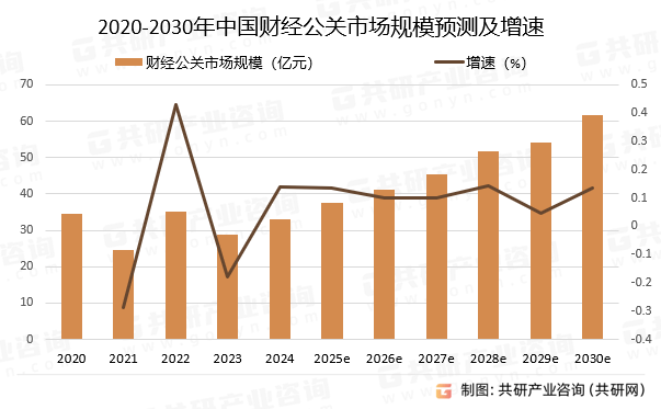 近年来受各年度IPO数量以及拟上市企业财经公关费用收入等要素的影响,我国财经公关办事市场规模呈现出较大的波动性,2023年中国财经公关市场规模为28。87亿元;估计2030年我国财经公关办事行业市场规模达61。6亿元。